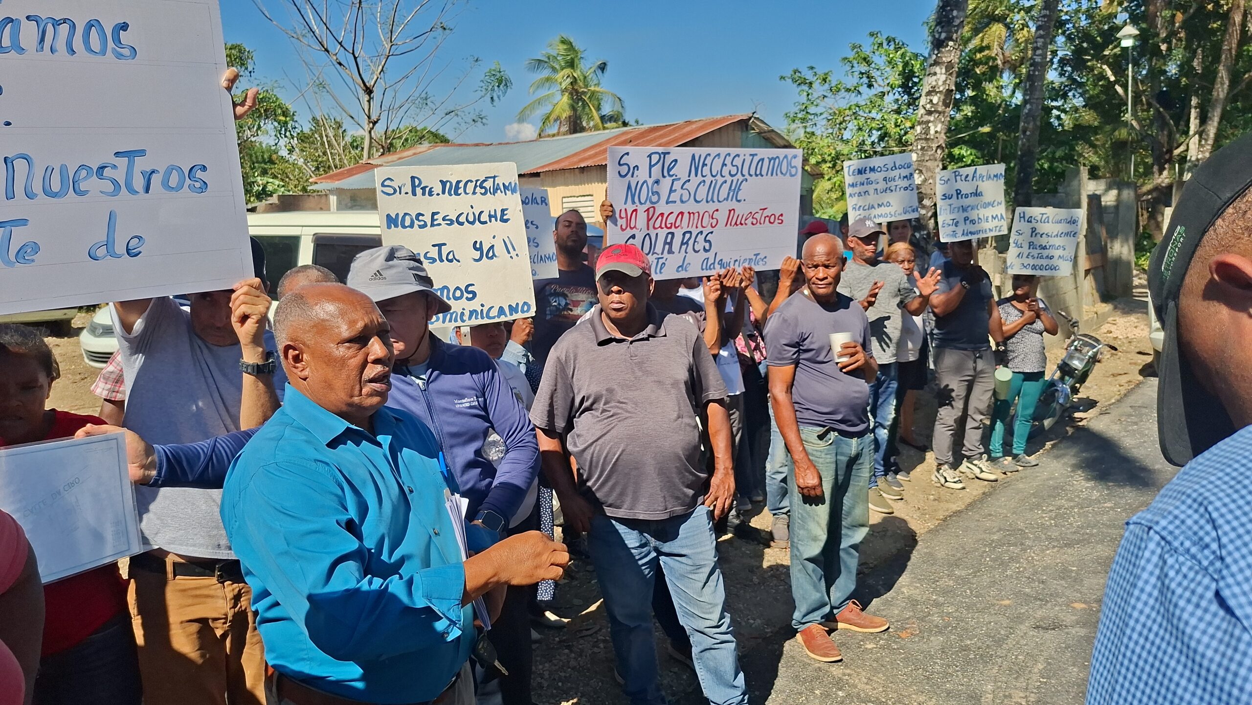 Julio Moreta, vocero de las aproximadamente 500 familias que envuelve el problema dijo que, como representante del Comité de Adquirientes de solares pagados al Estado, a través de Bienes Nacionales, estaban en el lugar en procura de que el Presidente de la República escuche sus reclamos.