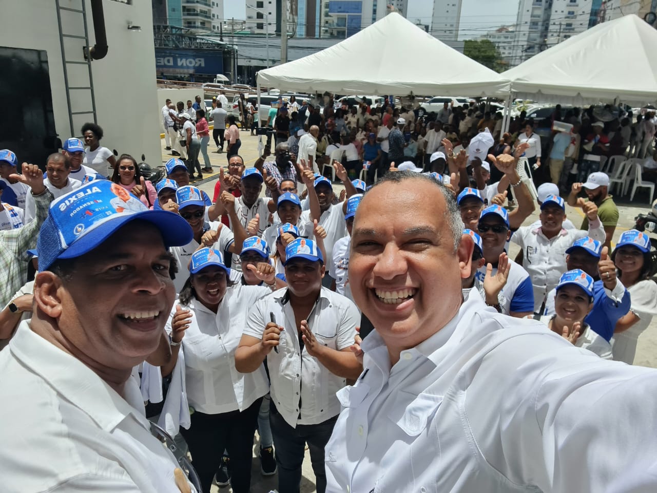 Luego de inscribir su precandidatura como senador por la provincia Santo Domingo, , celebró la profilaxis que está haciendo a sus aspirantes municipales y congresuales.