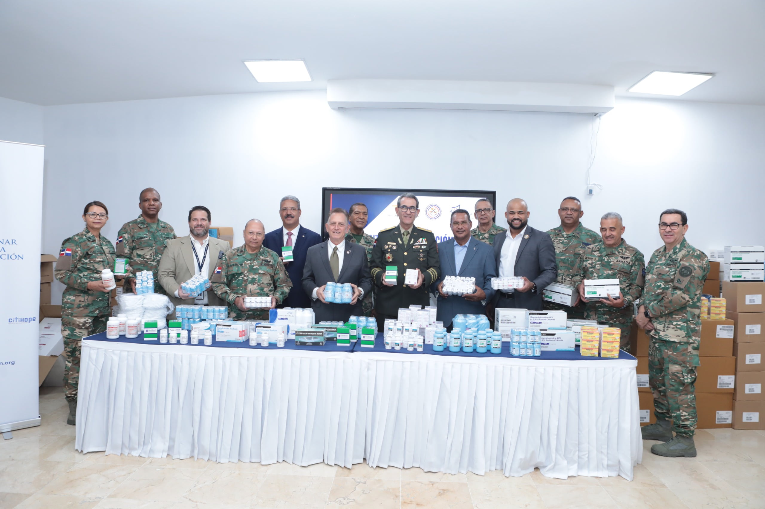 Santo Domingo, R.D.- El Ministerio de Defensa (MIDE) recibió una donación de medicamentos de la Alianza Empresarial “Sanar una Nación”, medicinas que serán utilizadas en beneficio de los miembros de las instituciones castrenses y los civiles que reciben asistencia médica en los Hospitales Militares.