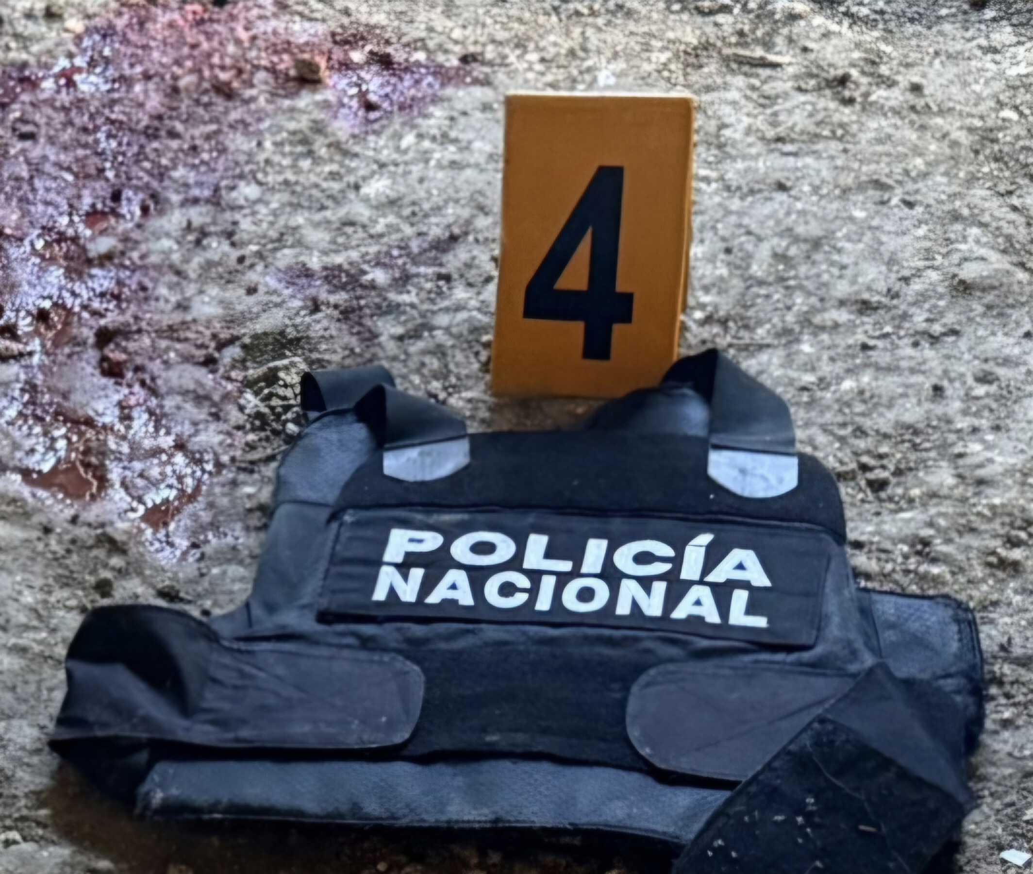En la escena del enfrentamiento, agentes de la Policía Científica recolectaron como evidencias una pistola calibre 9 milímetros, modelo Model 75, numeración F9225, así como dos casquillos, un chaleco antibalas de la Policía Nacional y tres celulares.