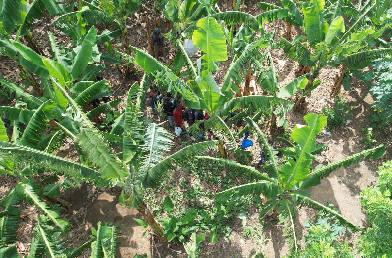 Los extranjeros indocumentados, entre ellos diez (10) hombres, seis (06) mujeres y un (01) menor de edad se ocultaron en un platanal cuando fueron localizados por drones y detenidos por las patrullas terrestres integradas por miembros del ERD.