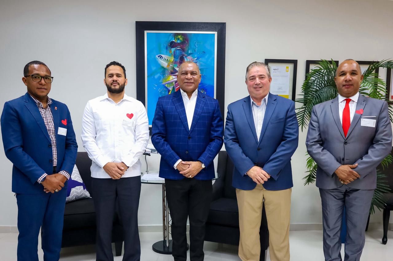 En la reunión, Roberto Hernández Basilio se hizo acompañar de los ejecutivos de la DGSPC, Julio García, coordinador del despacho; Ángelo Frías, consultor jurídico, y Nayrobi Rosario, director de Tecnología.