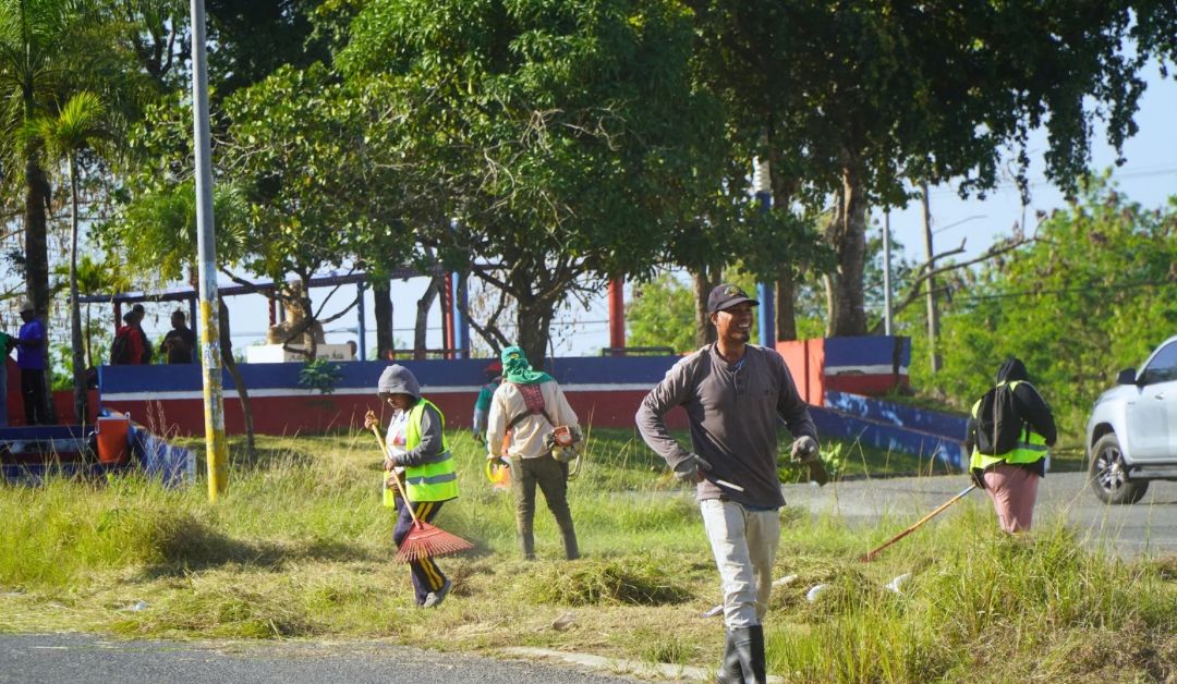 Las labores se desarrollaron con el objetivo de embellecer y acondicionar las áreas verdes que dan acceso a esta comunidad desde la Carretera Mella, próximo al Instituto Técnico Superior Comunitario (ITSC), así como la calle Juan Pablo Duarte, vía principal del sector, hasta llegar a la plazoleta que lleva el nombre del patricio.