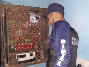La Vega, R.D.- La Policía Nacional informa que miembros de la Subdirección Regional de Inteligencia (DINTEL) realizaron 12 operativos simultáneos en distintos sectores del municipio de La Vega, donde incautaron nueve máquinas tragamonedas y tres cajones de metal.