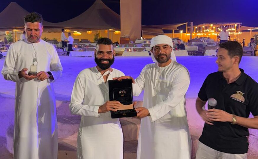 El galardón fue entregado durante una exclusiva noche en el desierto de Dubái, en un campamento beduino tradicional. La ceremonia se desarrolló en un ambiente auténtico y culturalmente enriquecedor, donde los invitados disfrutaron de una cena bajo las estrellas, rodeados de dunas iluminadas y un escenario que destacaba la riqueza del patrimonio árabe.