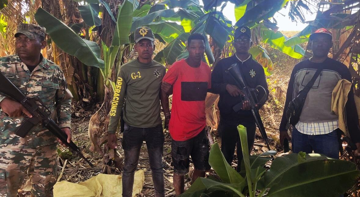 El detenido fue identificado como Chin Laduse, de nacionalidad haitiana, quien fue localizado escondido dentro de unos matorrales a orillas del referido río, acompañado de un menor de edad, también haitiano, a quien señaló como su hijo.