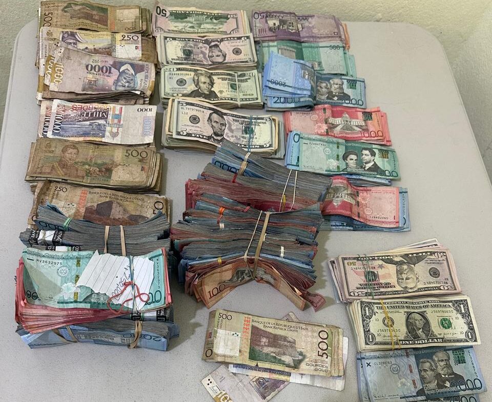 Al momento de la inspección fueron encontrados RD$3,524,250.00 (tres millones quinientos veinticuatro mil doscientos cincuenta pesos dominicanos), US$14,250.00 (catorce mil doscientos cincuenta dólares estadounidenses) y G 231,250.00 (doscientos treinta y un mil doscientos cincuenta gourdes haitianos).