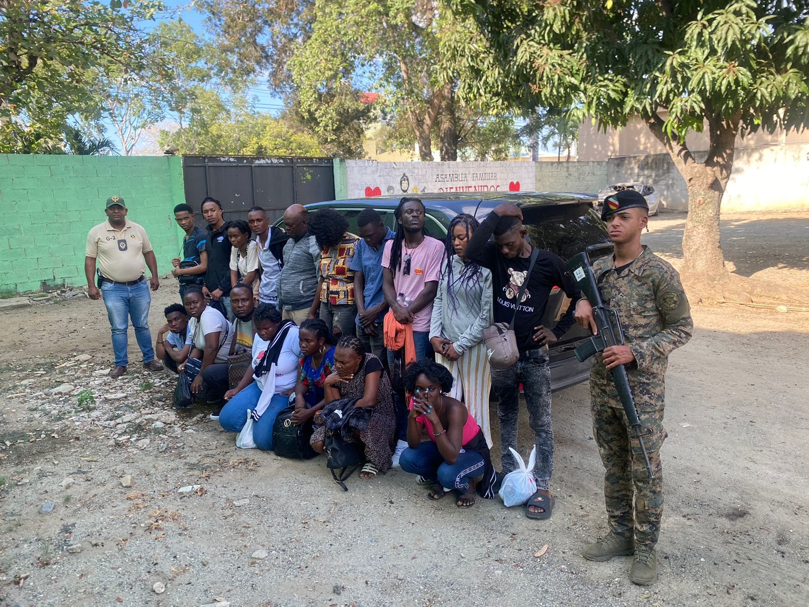 Miembros del ERD detuvieron, mediante patrullaje realizado en la comunidad de San José, una jeepeta marca Toyota, color negro, placa G703367, conducida por un hombre identificado como Adeurys Domínguez Rojas, quien transportaba al grupo de extranjeros compuesto por 09 hombres, 08 mujeres y 02 menores de edad.