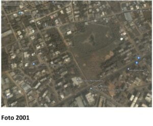 En las fotos del 2001 y 2006 (abajo) se observa el estado natural de esta área que en su momento tenía un servicio eco sistémico con una biota ribereña de anfibios y reptiles y palmas. Este sitio, según afirman los moradores servía como sumidero (drenaje natural) de las escorrentías que se producían en los barrios aledaños después de lluvias importantes. A los fines de evaluar el impacto socioambiental se analizaron varias fotos de Googles para comparar la evolución de los trabajos de rellenos que han venido impactando esta área natural.