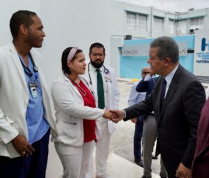 Santo Domingo, R.D.- El presidente del partido Fuerza del Pueblo, Leonel Fernández, visitó este viernes el Hospital Pediátrico Robert Reid Cabral, para conocer personalmente el estado de salud, de los niños que permanecen allí, afectados por el incendio en el Carnaval de Salcedo.