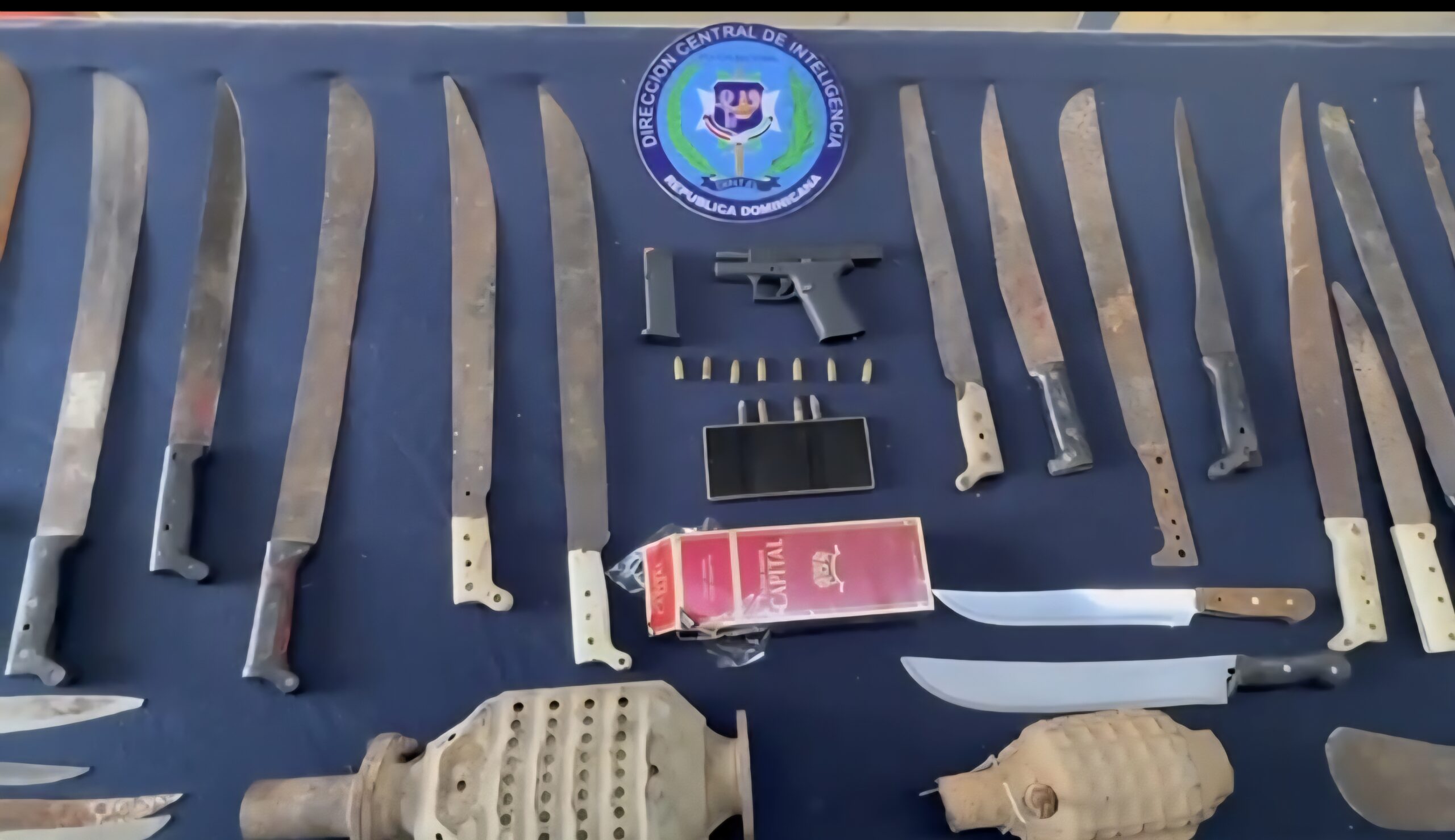 Durante las intervenciones, las autoridades ocuparon un total de 26 armas blancas de distintos tipos; una pistola marca Glock, modelo 43, calibre 9 milímetros, con su cargador y siete cápsulas; cuatro municiones adicionales; dos catalizadores; un celular, así como 240 unidades de cigarrillos de procedencia clandestina, distribuidos en paquetes y cajetillas.