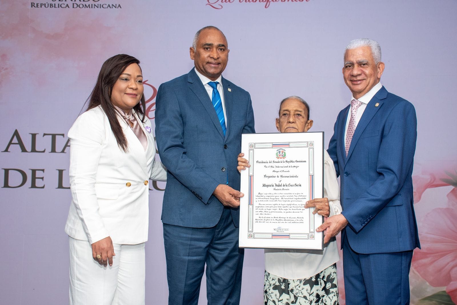 Peravia, R.D.- En un emotivo acto celebrado ayer jueves en el Senado de la República, se reconoció a varias mujeres dominicanas por su trayectoria y aportes a la sociedad, entre ellas Doña Altagracia de la Cruz García, cariñosamente conocida como “Tarara”, a solicitud del senador Julito Fulcar.