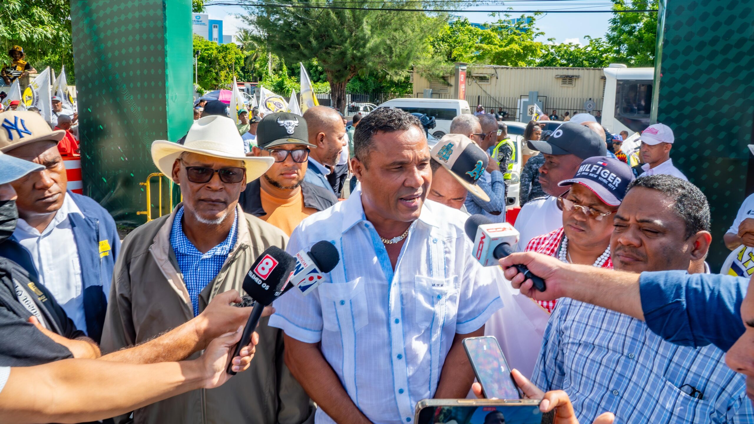 Durante la manifestación, Quevedo estuvo acompañado por Juan Tomás Rodríguez, primer vicepresidente; Ericson Solís, vicepresidente; Adolfo Vásquez, tesorero; Alberto Abreu, secretario de organización; Lucilo Concepción, presidente de ASOPROCAME; y Miguel de la Rosa, representante de ASTRAPU.